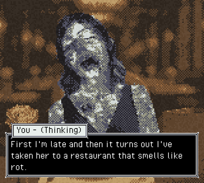 MÆRE III originally started life as a GameBoy port of MÆRE 1 that I ultimately didn't end up doing. But I really liked the visual style so decided to keep that in this game. One of the biggest changes in this game is that the dreams are now the focus of gameplay. In previous games they would just show strange imagery and text, but in this game many of the dreams are mini-visual novels that you can interact with and influence how they pan out.